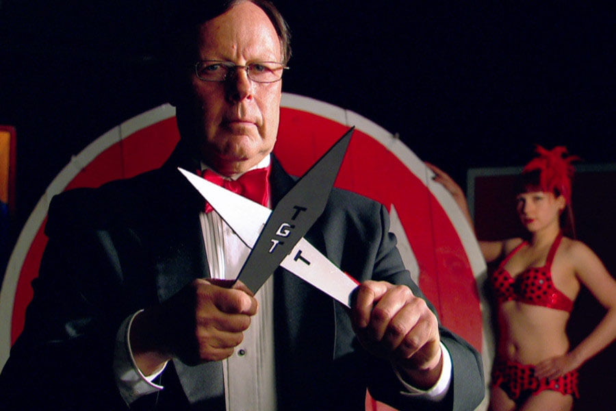 Cel mai mare număr de cuţite aruncate într-un minut aparţine lui David R. Adamovich, din SUA, care a aruncat 102 cuţite lungi de 35 de centimetri la ţintă, în jurul Tinei Nagy, partenera lui de scenă. Acest record ciudat a fost stabilit în oraşul Freeport, din apropiere de New York, în anul 2007.
